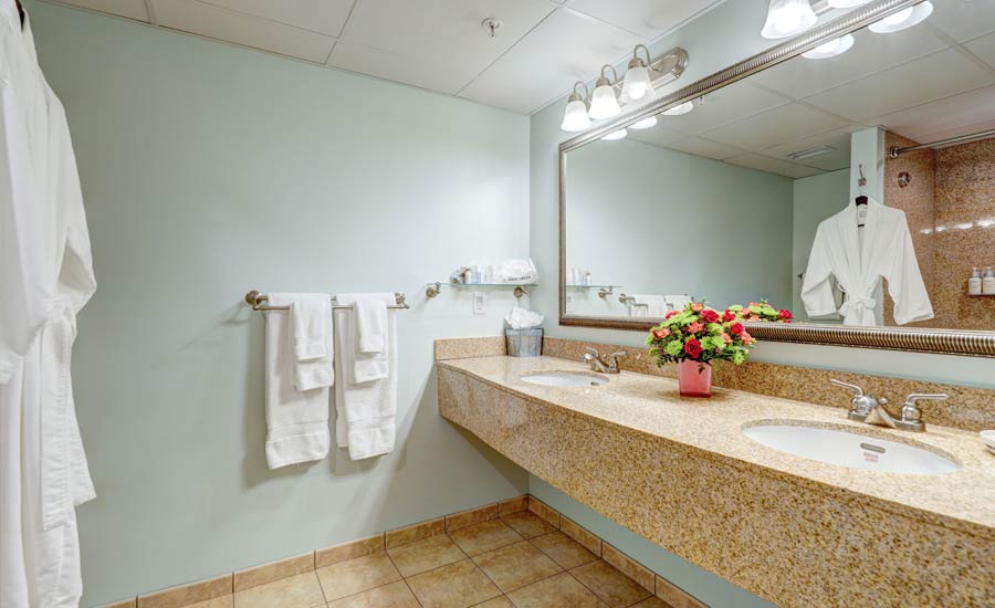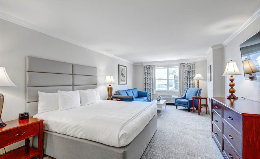 Experience our spacious king guest room offering views of tranquil Lake Avenue with large granite bathroom featuring a double sink bowl vanity, bath tub/shower, vanity mirror, soft robes and towels. Guest room also offers luxurious king bedding and linens, coffee areas with mini refrigerator, large flat screen HDTV, desk area, sofa sitting area, in-room safe and turn down service nightly. Please call the hotel directly for accommodations exceeding 4 people in a room, 302-227-4300 or 877-247-7346. All rates based on double occupancy.